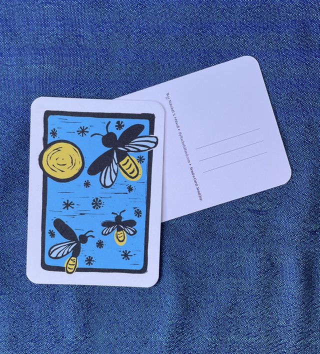 A design is printed on the front and the back is preprinted to facilitate an easy-to-send postcard.