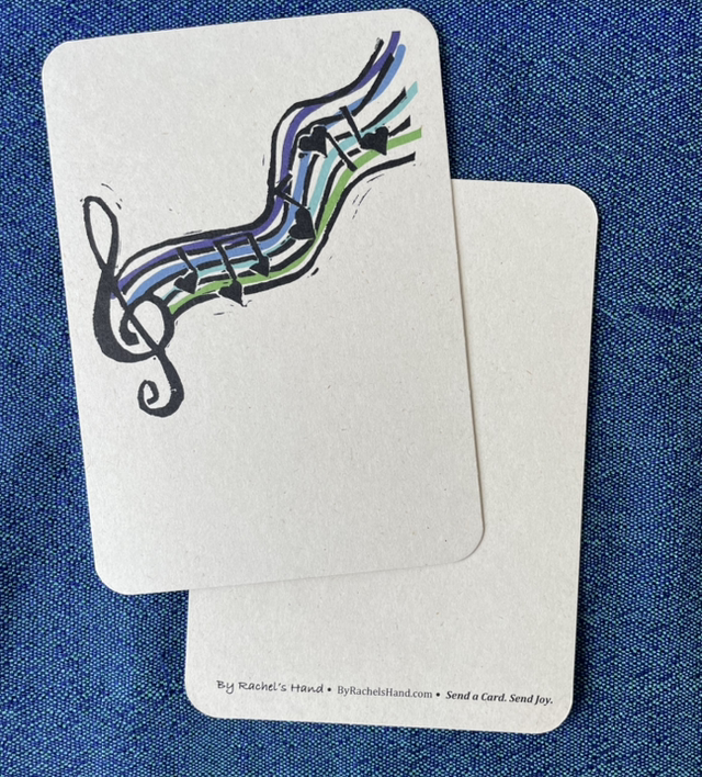 Notecards are A6 with rounded corners and printed on sturdy paper.