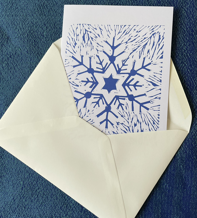 Oversized Snowflake card is A5 when folded, which is about double the size of a normal greeting card card. Great for those times when you are sending a group gift!