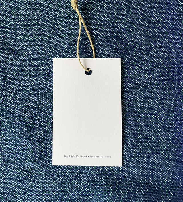 Gift tag (approximately the size of a business card). Printed with a design on the front, blank back except small line at the bottom with business information.